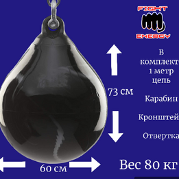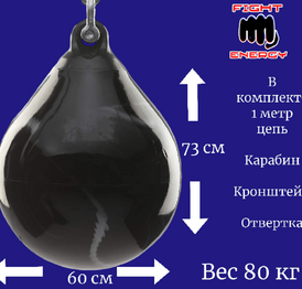 Груша имеет вес около 80 кг в наполненном водой состоянии, что делает ее подходящей для отработки тяжелых ударов. Материал груши - промышленный винил, который отличается высокой прочностью и не деформируется со временем.
